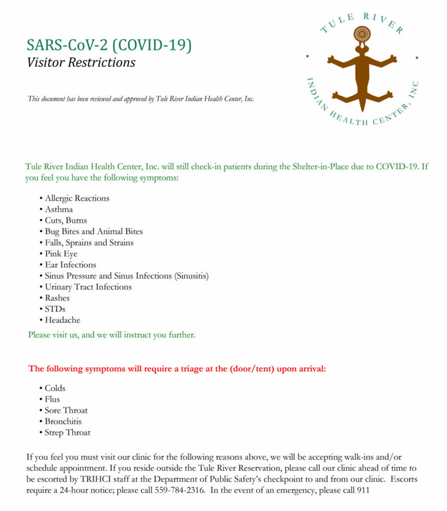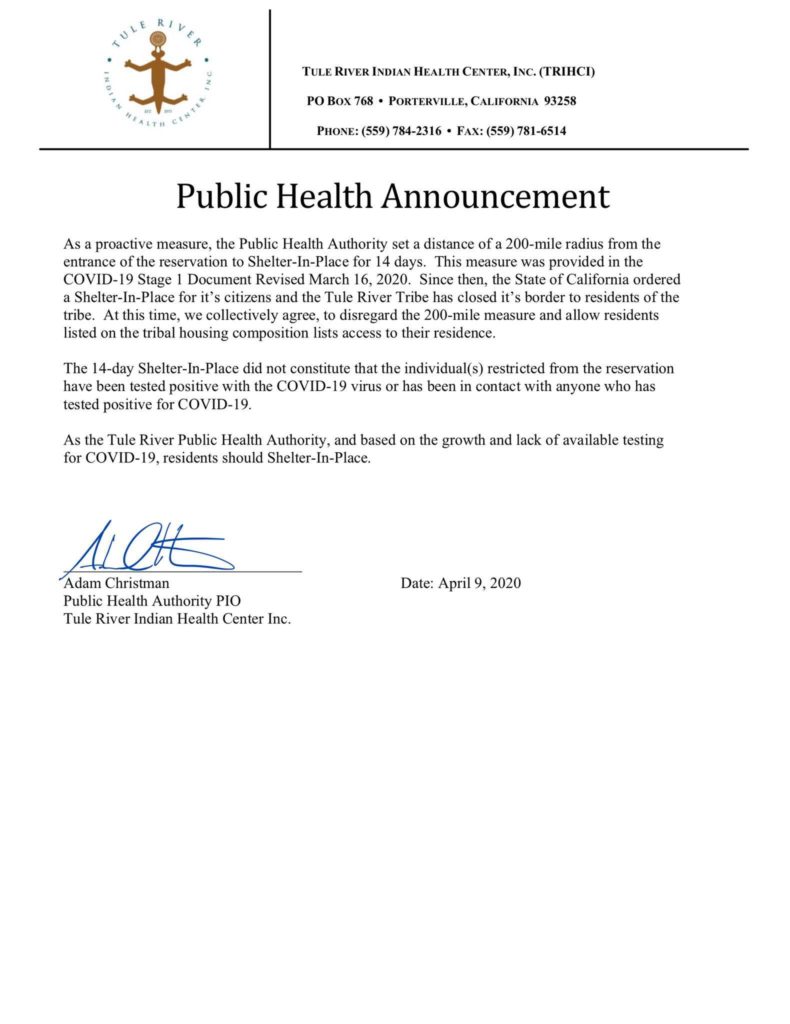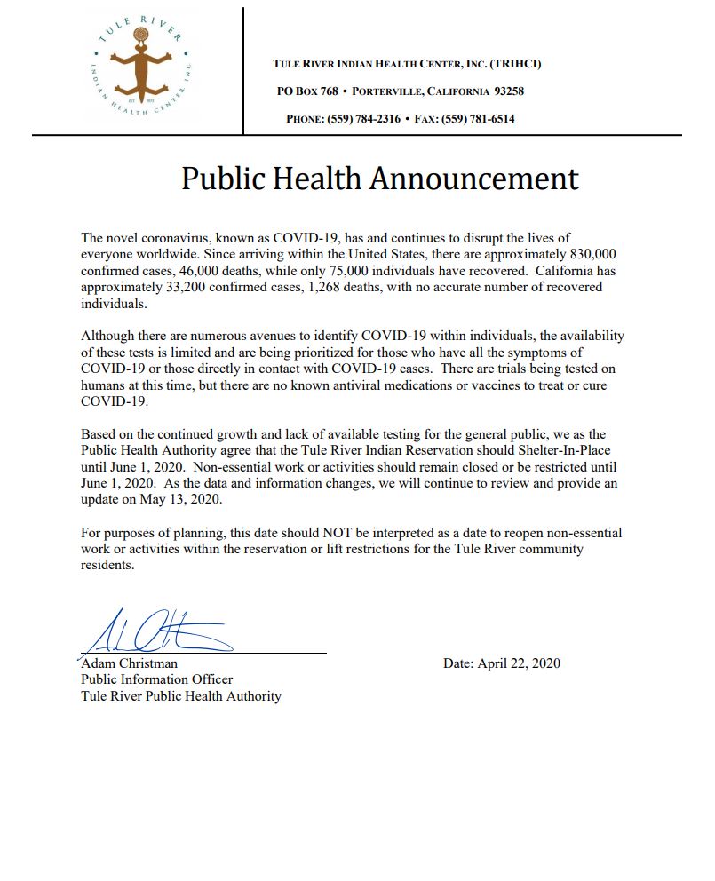 Information from yesterday’s Zoom webinar: There are currently Zero confirmed cases and Zero individuals residing within the reservation being monitored by Tulare County Public Officials or TRIHCI for COVID-19. In…