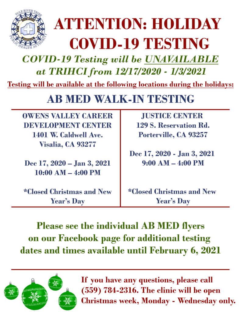 COVID-19 Testing Availability During the Holidays By Tule.Health | December 17, 2020 Posted in Email Subscribers