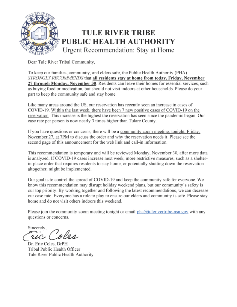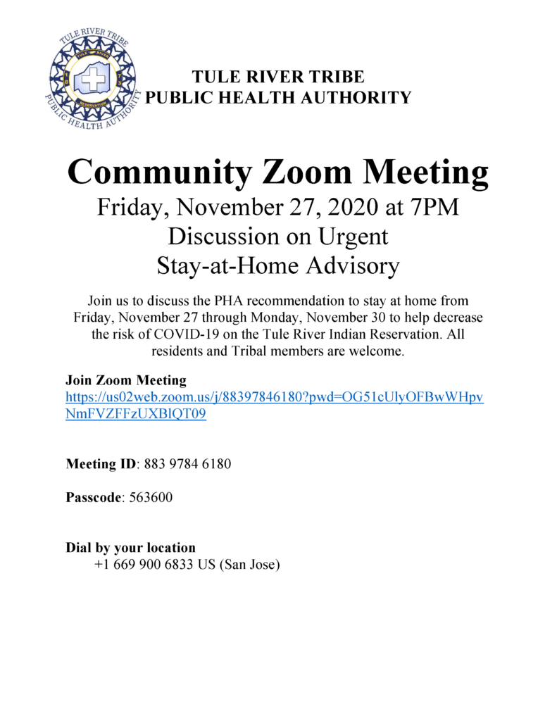 PHA Recommendation and Community Zoom Meeting 11/27/2020 By Tule.Health | November 28, 2020 Posted in Email Subscribers